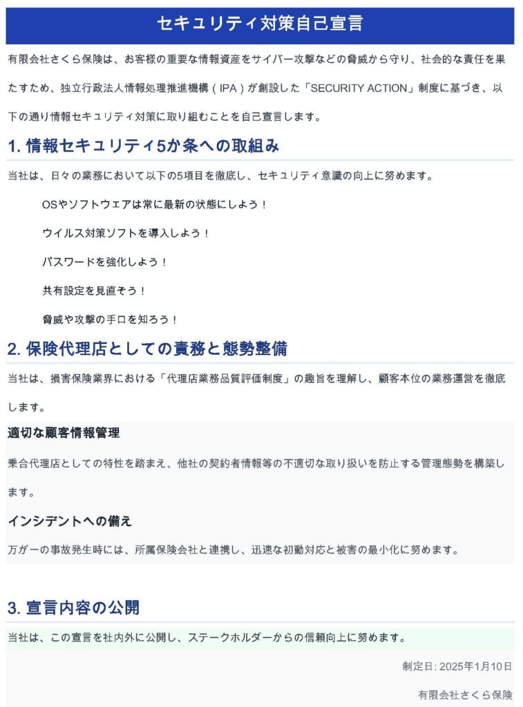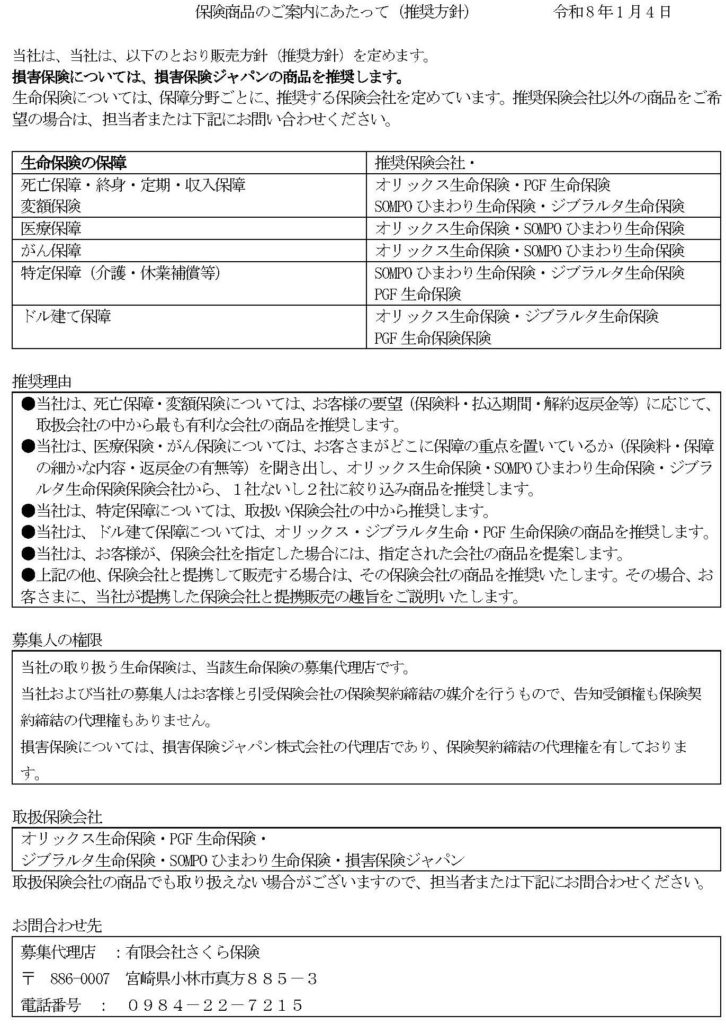 有限会社さくら保険(以下「当社」という。)は、金融庁が公表している「顧客本位の業